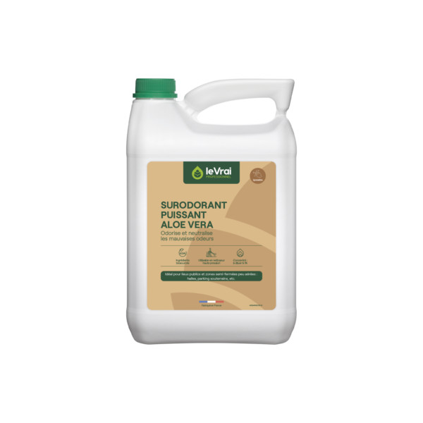 eVRAIPROFESSIONNELSLCALOEVERAestunsurodorantconcentré,permettant deneutraliserlesmauvaisesodeurs tout en laissant un parfum frais et durable. Il sutilise pour lodorisation : - des lieux publics d'extérieur : WC publics, devantures de commerces, containers ordures ménagères - des parties communes intérieures : garages dimmeubles, parkings souterrains, caves,... Le parfum Aloe Vera est apprécié pour son efficacité en zone semi-ouvertes ou fermées.