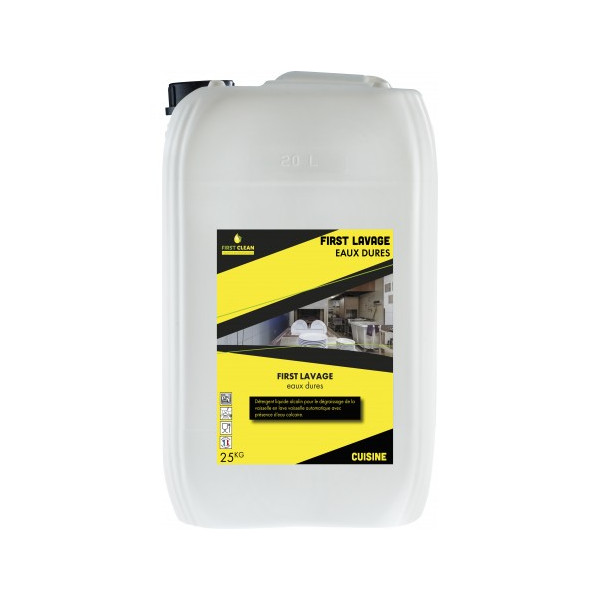 LAVAGE EAU DURE est un liquide de lavage pour lave-vaisselle automatique. Sa formule permet de l’utiliser en présence d’eau calcaire (jusqu’à 45°TH). Compatible avec tous types de lave-vaisselle. Il doit être distribué par un doseur automatique.
